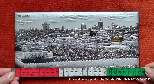 תבליט מוכסף ירושלים על פלטה עץ מהגוני