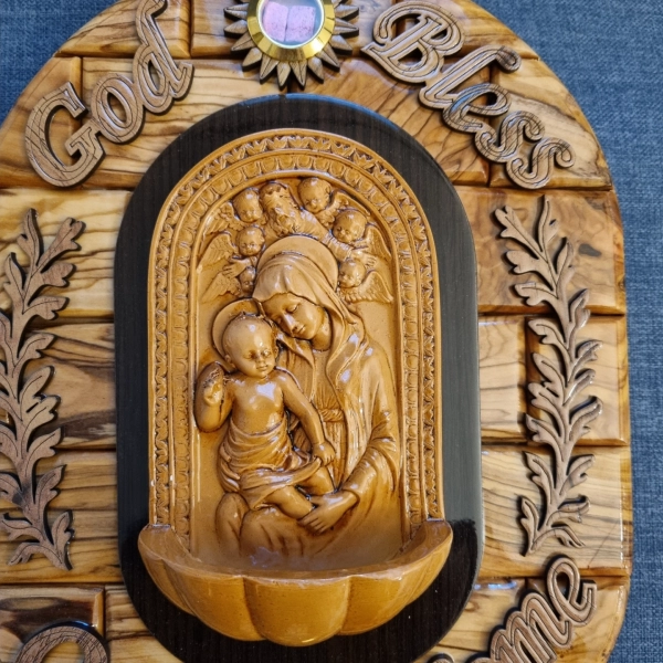 מים קדושים ומשפחה קדושה על פסיפס עץ זית