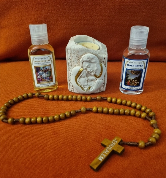פמוט לנר משפחה קדושה מים מהירדן שמן משיחה ושרשרת תפילה מירושלים
