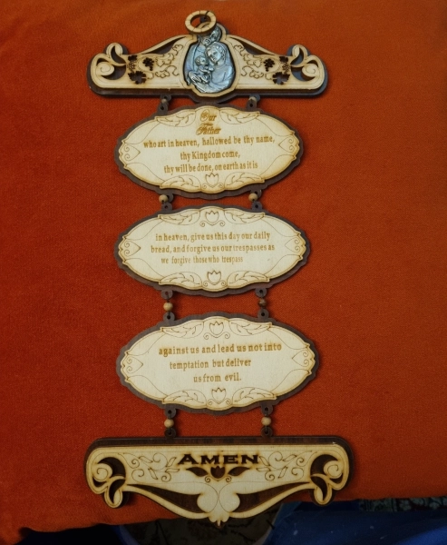 איקון משפחה קדושה לתלייה עם תפילת אבינו שבשמים ם
