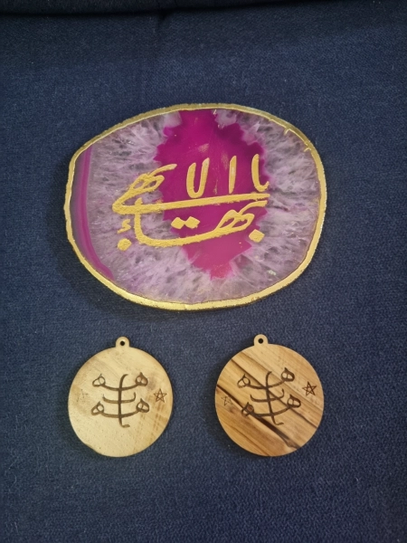 סמל באהי "השם הגדול" על אבן אגאט טבעית ו 2 תליונים