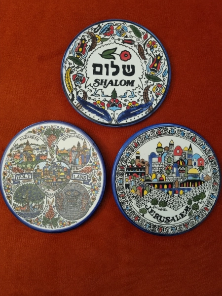 3 צלחות קרמיקה ארמנית 13 סמ שלום,ירושלים,מקומות קדושים