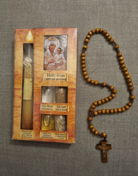 שרשרת תפילה 33 חרוזי עץ וצלב