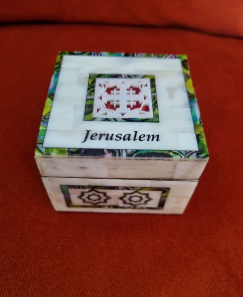 קופסא זית ציפוי אבן אם הפנינה צלב ירושלים נצרות