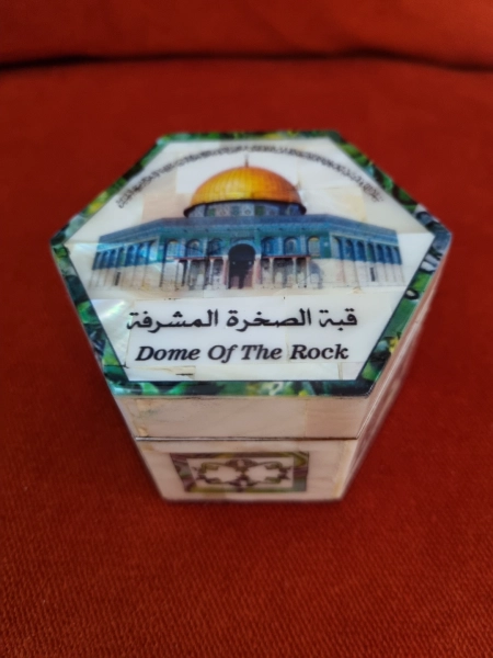 קופסא מעץ זית בציפוי אם הפנינה מסגד כיפת הסלע