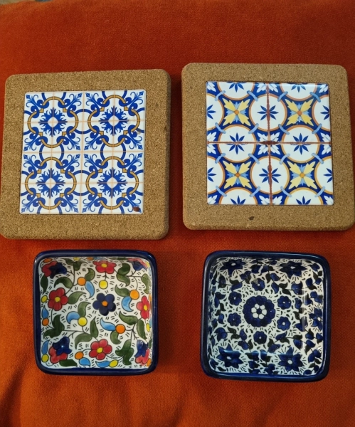 2 מעמד סיר קרמיקה ארמנית ו 2 קעריות