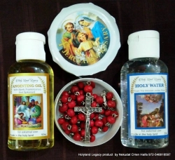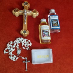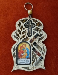 ברכת בית ברומנית מריה הקדושה ,צלב מעץ עם מים קדושים ושמן משיחה