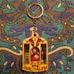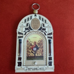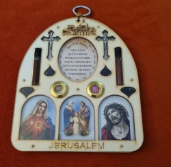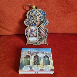סט נצרות מים קדושים אדמה מירושלים איקונה מעץ וצלב זית נצרות מהודר
