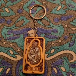 סצנת המולד בבית לחם תיבה מנגנת מעץ זית עבודת יד עם שרשרת תפילה שמן משיחה ומים קדושים מנהר הירדן