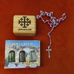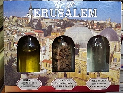 סט נצרות בסיסי 3 בקבוקים שמן משיחה מים קדושים מנהר הירדן אדמה מירושלים