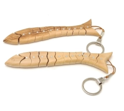 מחזיק מפתחות דגים מעץ זיתHandmade Olive wood Fish key Chain