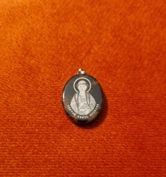 שרשרת תפילה וצלב קתולי עם חלונית אדמה מירושלים